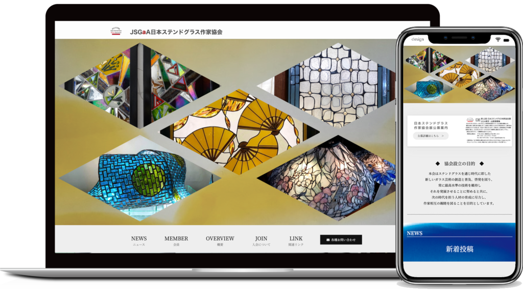 JSGaA 日本ステンドグラス作家協会 Planning / Design / HTML,CSS / Wordpress 既存サイトのリニューアルに携わらせていただきました。